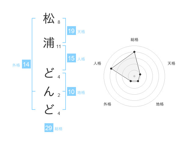 松浦 どんどさんを姓名の画数から五運を鑑定