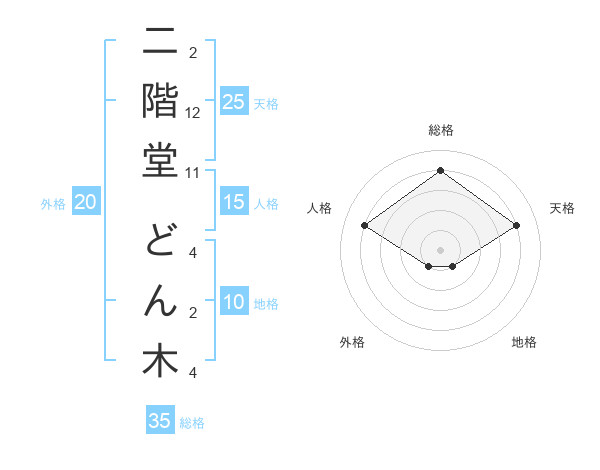 二階堂 どん木さんを姓名の画数から五運を鑑定