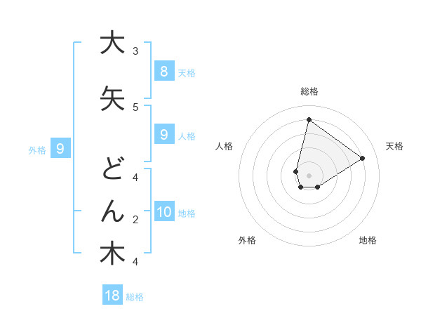 大矢 どん木さんを姓名の画数から五運を鑑定
