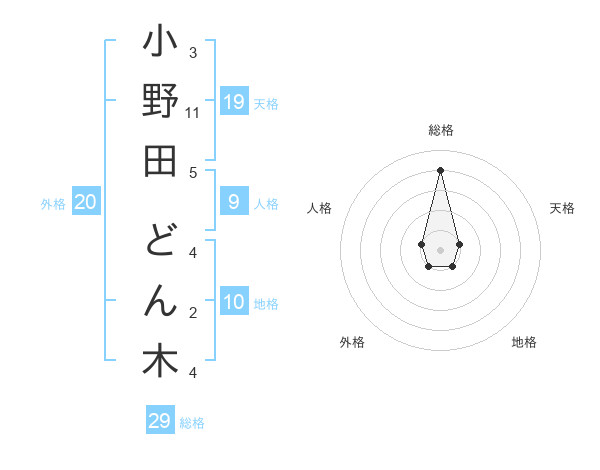 小野田 どん木さんを姓名の画数から五運を鑑定