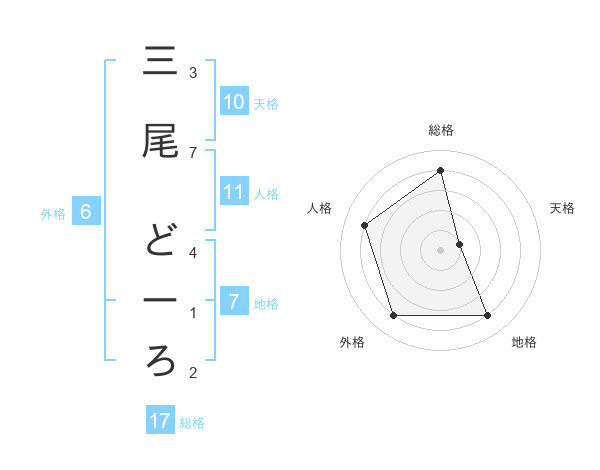 三尾 どーろさんの総格は17画の4点!