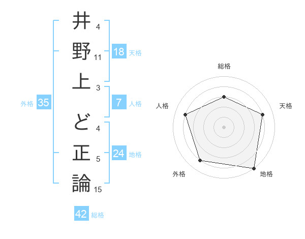 井野上 ど正論さんを姓名の画数から五運を鑑定