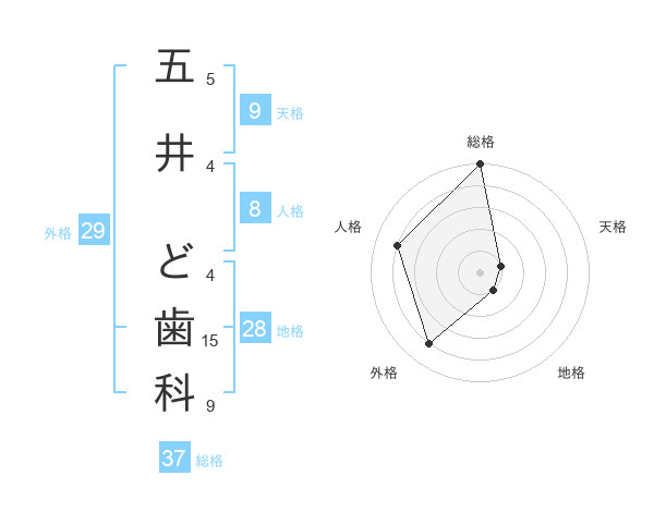 五井 ど歯科さんの総格は37画の5点!
