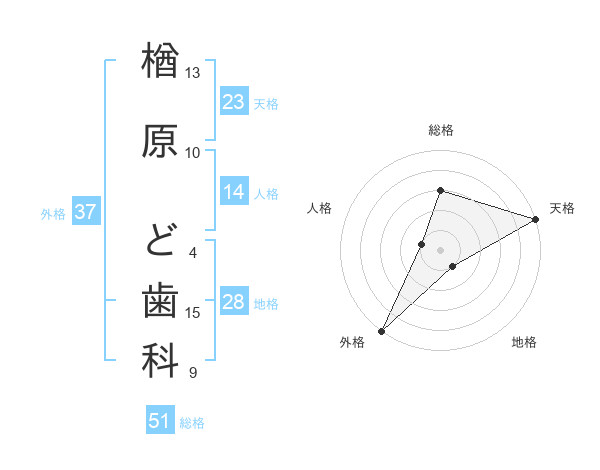 楢原 ど歯科さんの総格は51画の3点!