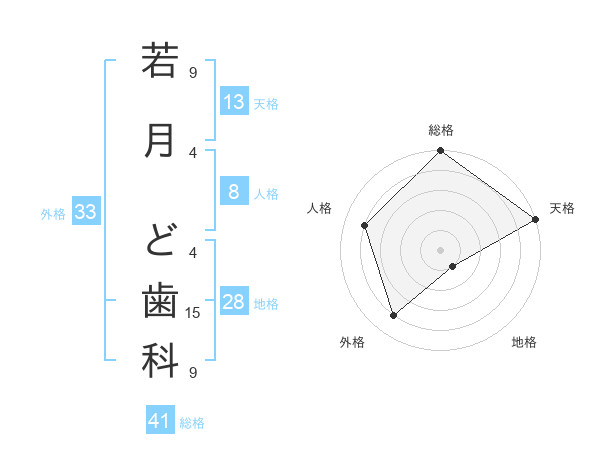 若月 ど歯科さんの総格は41画の5点
