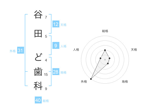 谷田 ど歯科さんを姓名の画数から五運を鑑定