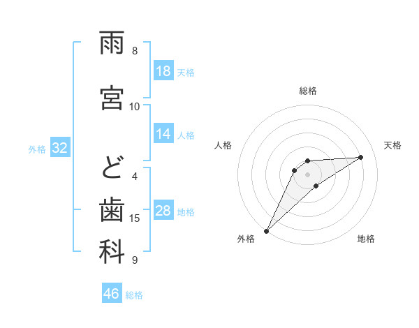 雨宮 ど歯科さんを姓名の画数から五運を鑑定