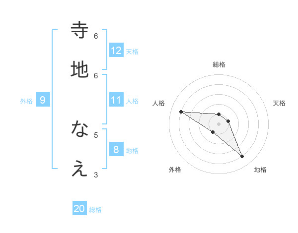 寺地 なえさんの総格は20画の1点!