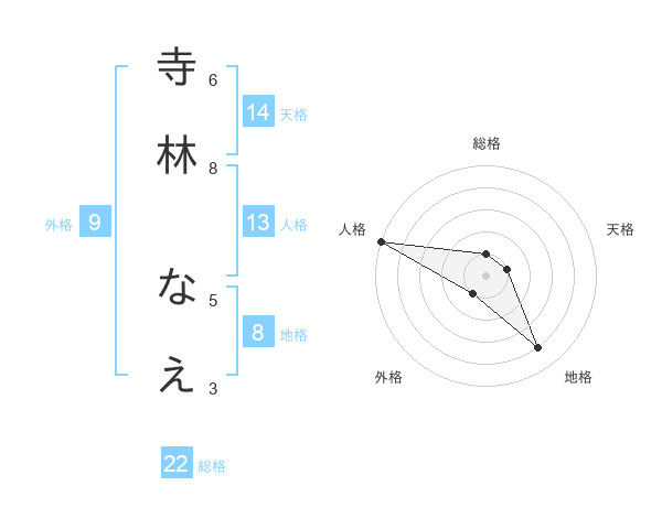 寺林 なえさんの総格は22画の1点!