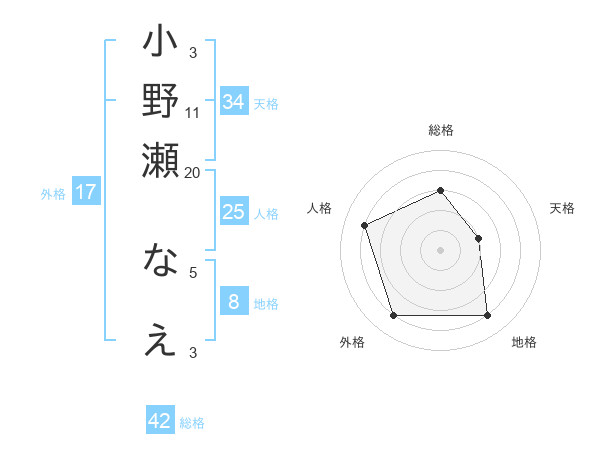小野瀬 なえさんの総格は42画の3点!