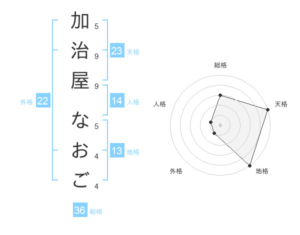 加治屋 なおごさんの地格は13画の5点!