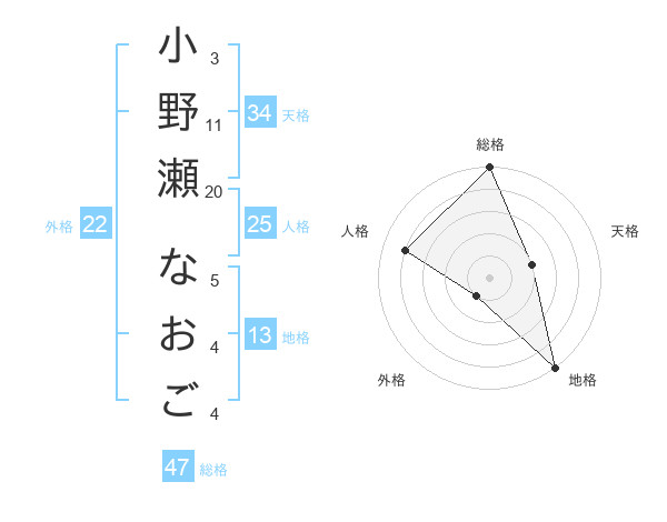 小野瀬 なおごさんの総格は47画の5点!