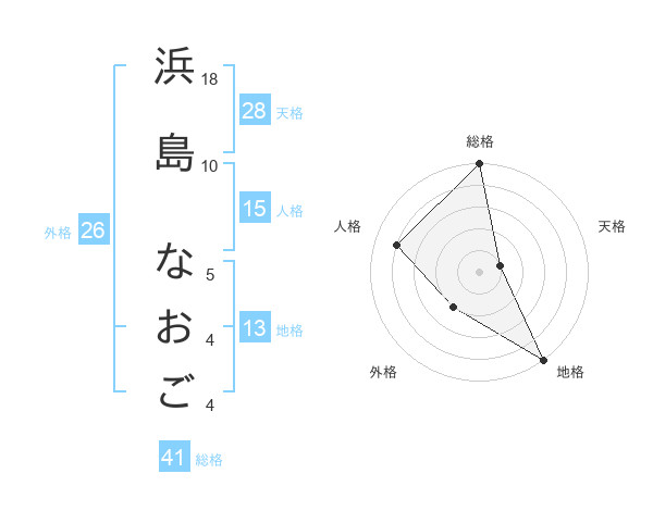 浜島 なおごさんを姓名の画数から五運を鑑定