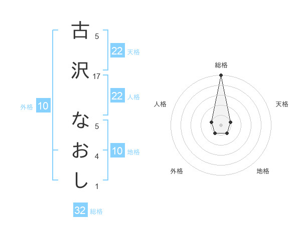 古沢 なおしさんの総格は32画の5点!
