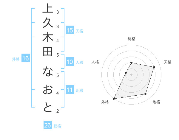 上久木田 なおとさんを姓名の画数から五運を鑑定