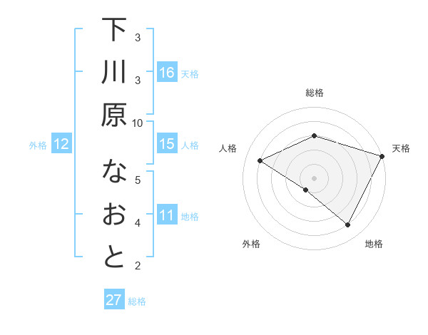下川原 なおとさんの総格は27画の3点!