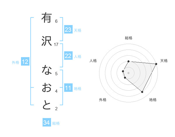 有沢 なおとさんの天格は23画の5点!