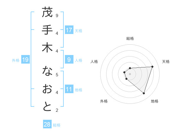 茂手木 なおとさんの天格は17画の4点!
