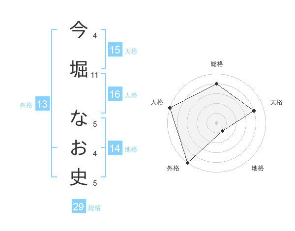 今堀 なお史さんを姓名の画数から五運を鑑定