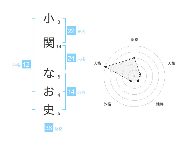 小関 なお史さんの総格は36画の3点