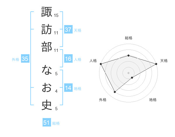 諏訪部 なお史さんを姓名の画数から五運を鑑定