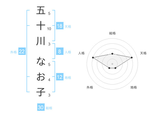 五十川 なお子さんを姓名の画数から五運を鑑定