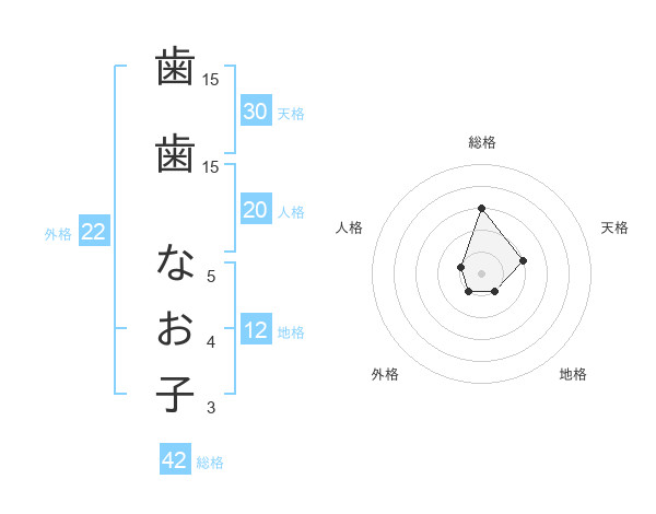 歯歯 なお子さんの総格は42画の3点!