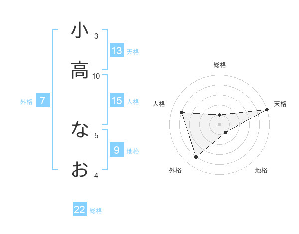 小高 なおさんの天格は13画の5点!