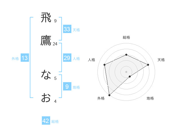 飛鷹 なおさんの外格は13画の5点!