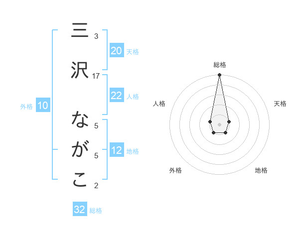 三沢 ながこさんを姓名の画数から五運を鑑定