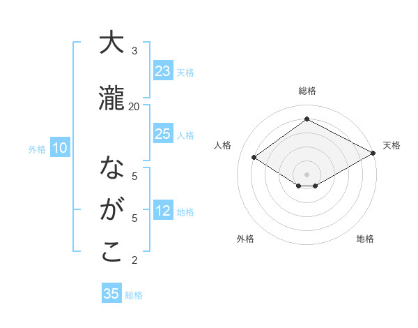 大瀧 ながこさんの天格は23画の5点!