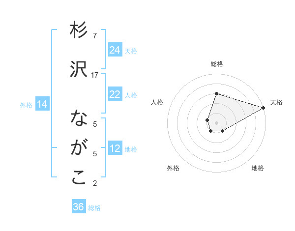 杉沢 ながこさんを姓名の画数から五運を鑑定