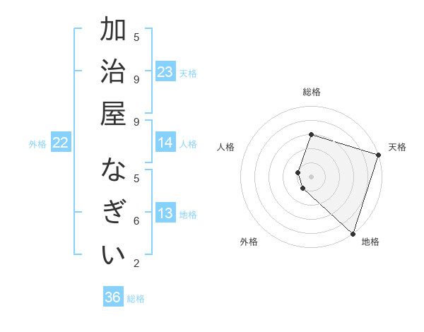 加治屋 なぎいさんを姓名の画数から五運を鑑定