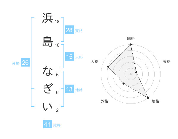 浜島 なぎいさんを姓名の画数から五運を鑑定