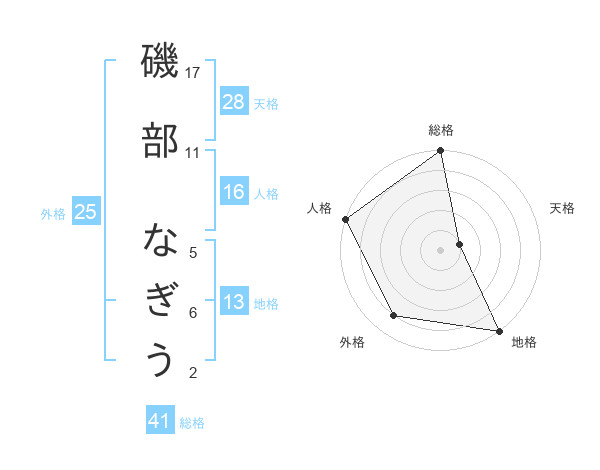 磯部 なぎうさんを姓名の画数から五運を鑑定