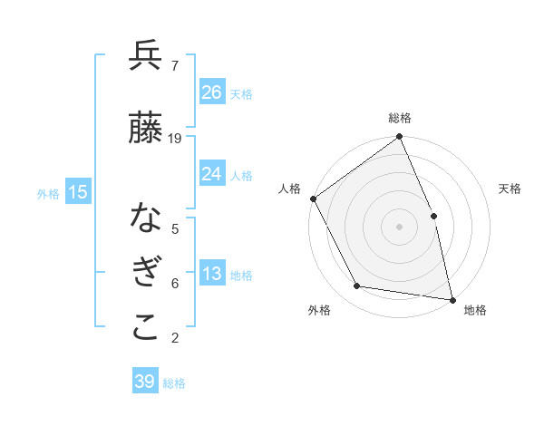 兵藤 なぎこさんを姓名の画数から五運を鑑定