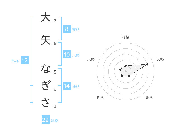 大矢 なぎささんを姓名の画数から五運を鑑定