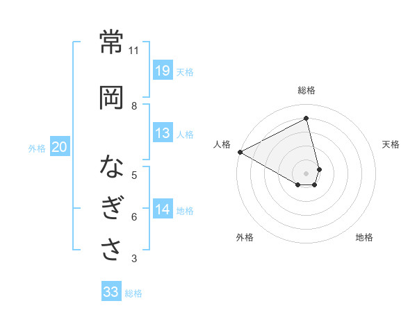 常岡 なぎささんを姓名の画数から五運を鑑定