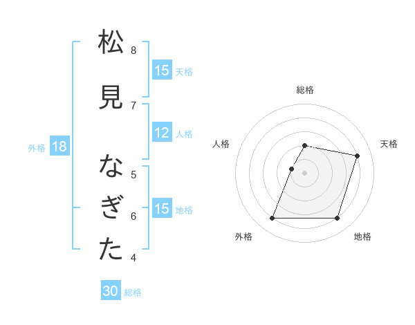 松見 なぎたさんの天格は15画の4点!
