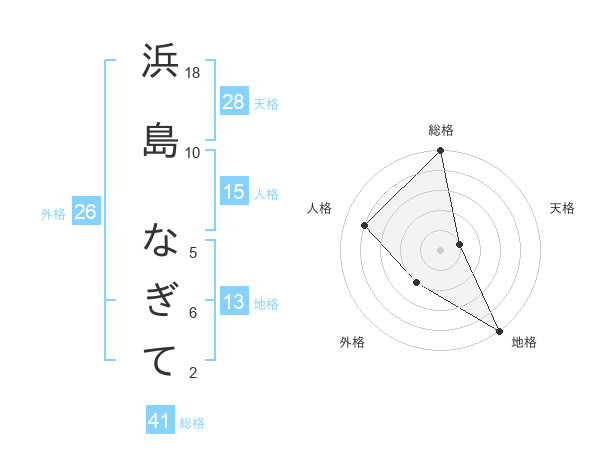 浜島 なぎてさんを姓名の画数から五運を鑑定