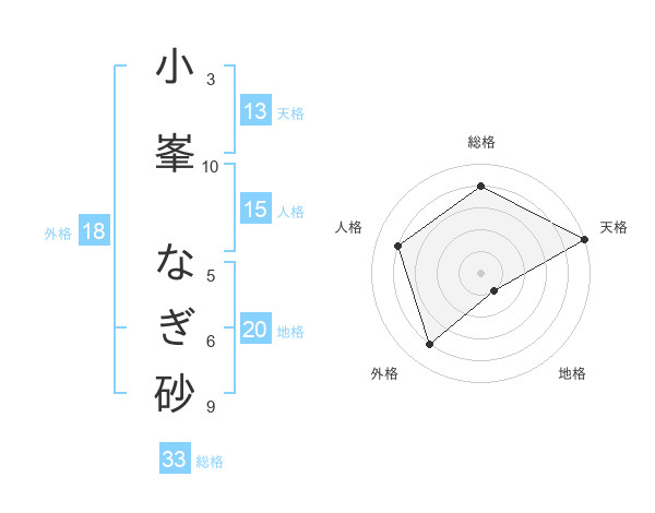 小峯 なぎ砂さんの天格は13画の5点!