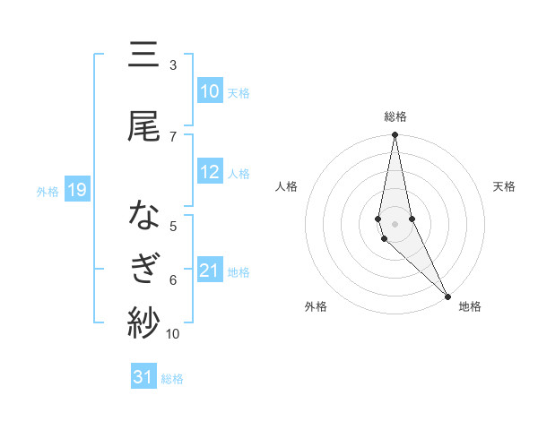 三尾 なぎ紗さんを姓名の画数から五運を鑑定