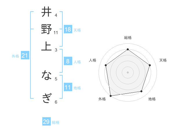 井野上 なぎさんを姓名の画数から五運を鑑定