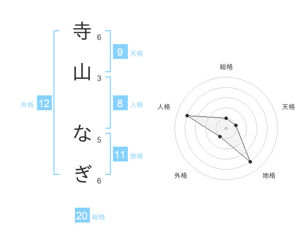 寺山 なぎさんの総格は20画の1点!