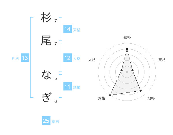 杉尾 なぎさんの総格は25画の4点!