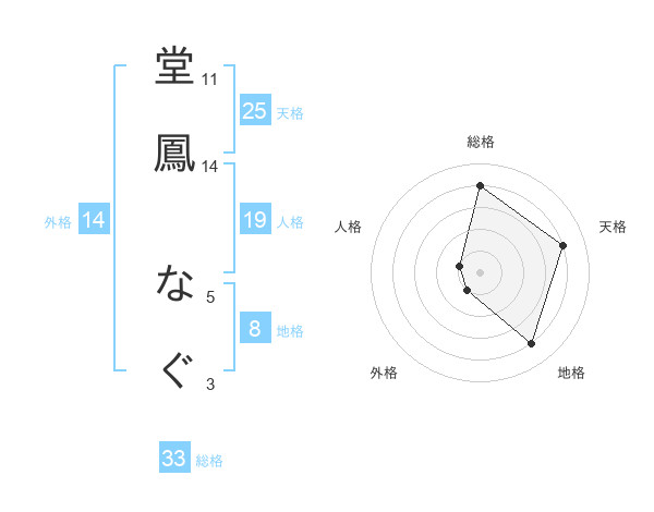 堂鳳 なぐさんを姓名の画数から五運を鑑定