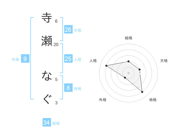 寺瀬 なぐさんの地格は8画の4点!