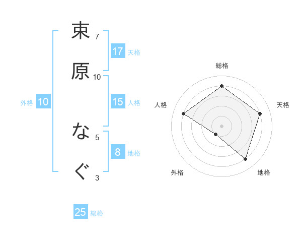 束原 なぐさんの天格は17画の4点!