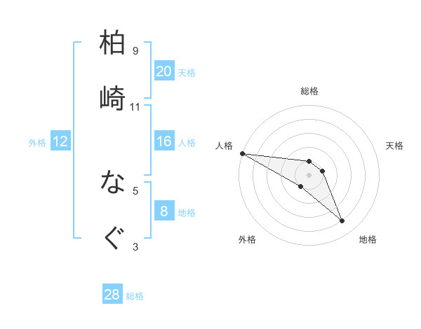 柏崎 なぐさんの人格は16画の5点!