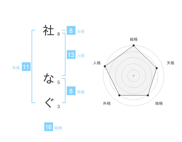 社 なぐさんの総格は16画の5点!